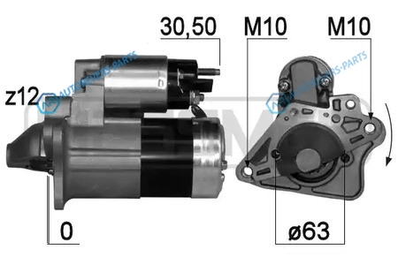 Напряжение [В]:12 | для артикула №:220758 | Мощность стартера [кВт]:0.95 | Число зубцов:12 | Идентификационный номер исполнения штекерного разъема:30-50 | Направление вращения:по часовой стрелке | ? фланца [мм]:63 | Количество крепежных отверстий:2 | Ведущая шестерня - основная позиция [мм]:0