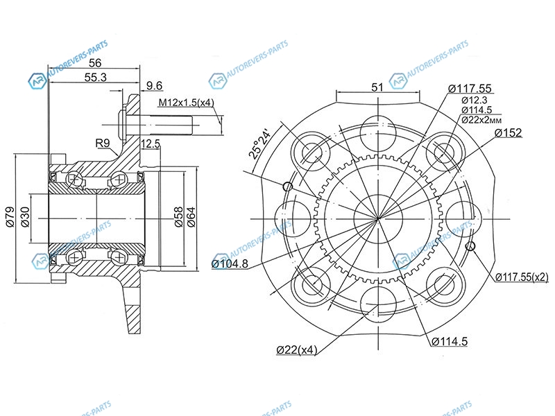 Ступичный узел задн. HONDA ACCORDTORNEO 2.0-2.3 98-02 (с ABS)
