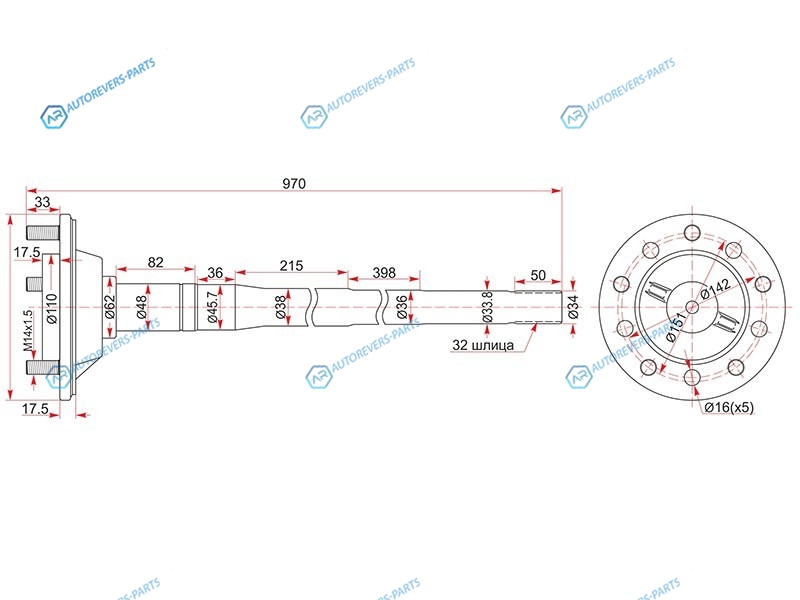 Полуось RR TY Land Cruiser 100 -LH