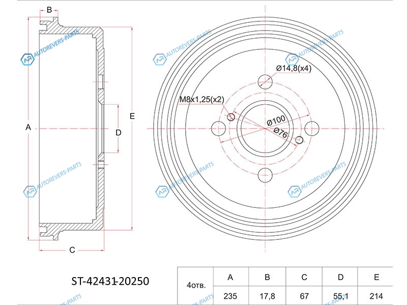 Барабан тормозной зад TOYOTA CorollaSprinter 2WD 95- AE1011. EE111. AT212 (13)