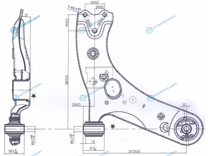 Рычаг нижний TOYOTA PRIUS 12-COROLLARUMIONMARK XAURISBLADESCIONZELASLEXUS HS250H 06- RH