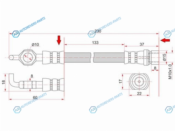 Шланг тормозной передний (Таиланд) TOYOTA ESTIMAEMINALUCIDAPREVIA 90-99 LH=RH