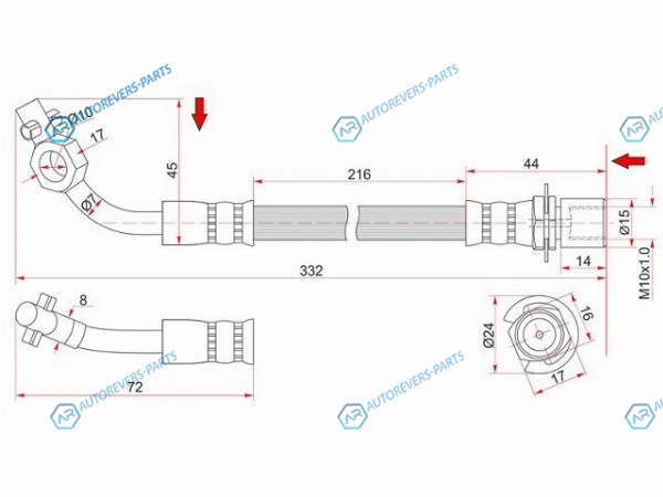Шланг тормозной передний (Таиланд) TOYOTA LAND CRUISER 90-92 RH