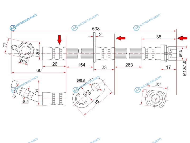 Шланг тормозной передний (Таиланд) TOYOTA CAMRYGRACIAHARRIERMARK2 QUALISWINDOM правый