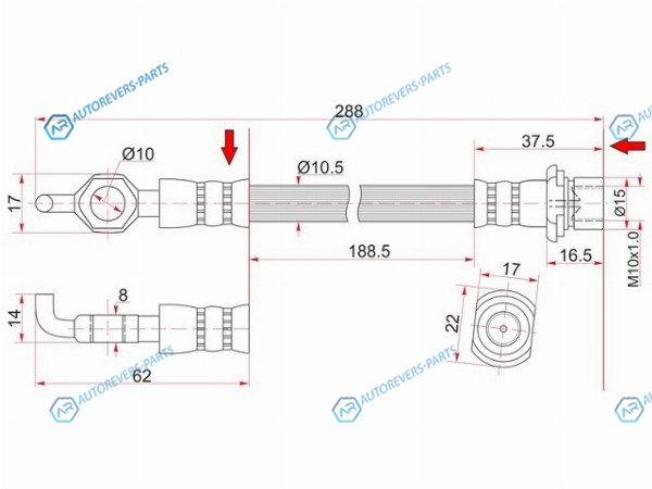 Шланг тормозной перед (Таиланд) TOYOTA LITETOWNACE NOAH 2WD 96-98 LH=RH