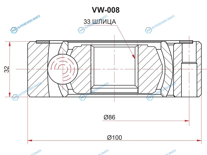 Шрус внутренний VAG AUDI A3S3 08-13OCTAVIA 04-13 YETI 10-15CADDY 11-15GOLF PLUS 05-14JETTA 11-1