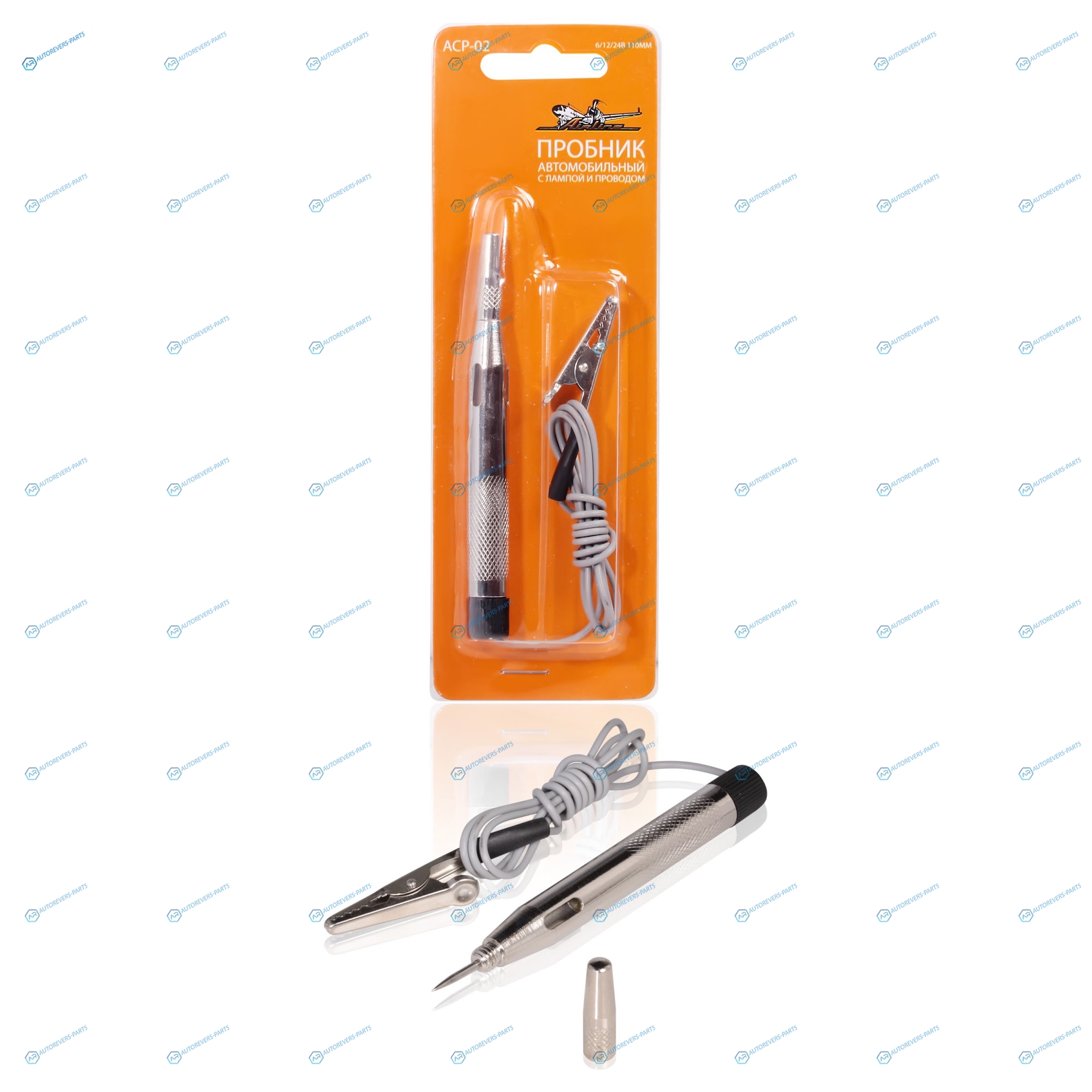 ACP-02 Пробник автомобильный с лампой и проводом металл 61224В 110мм