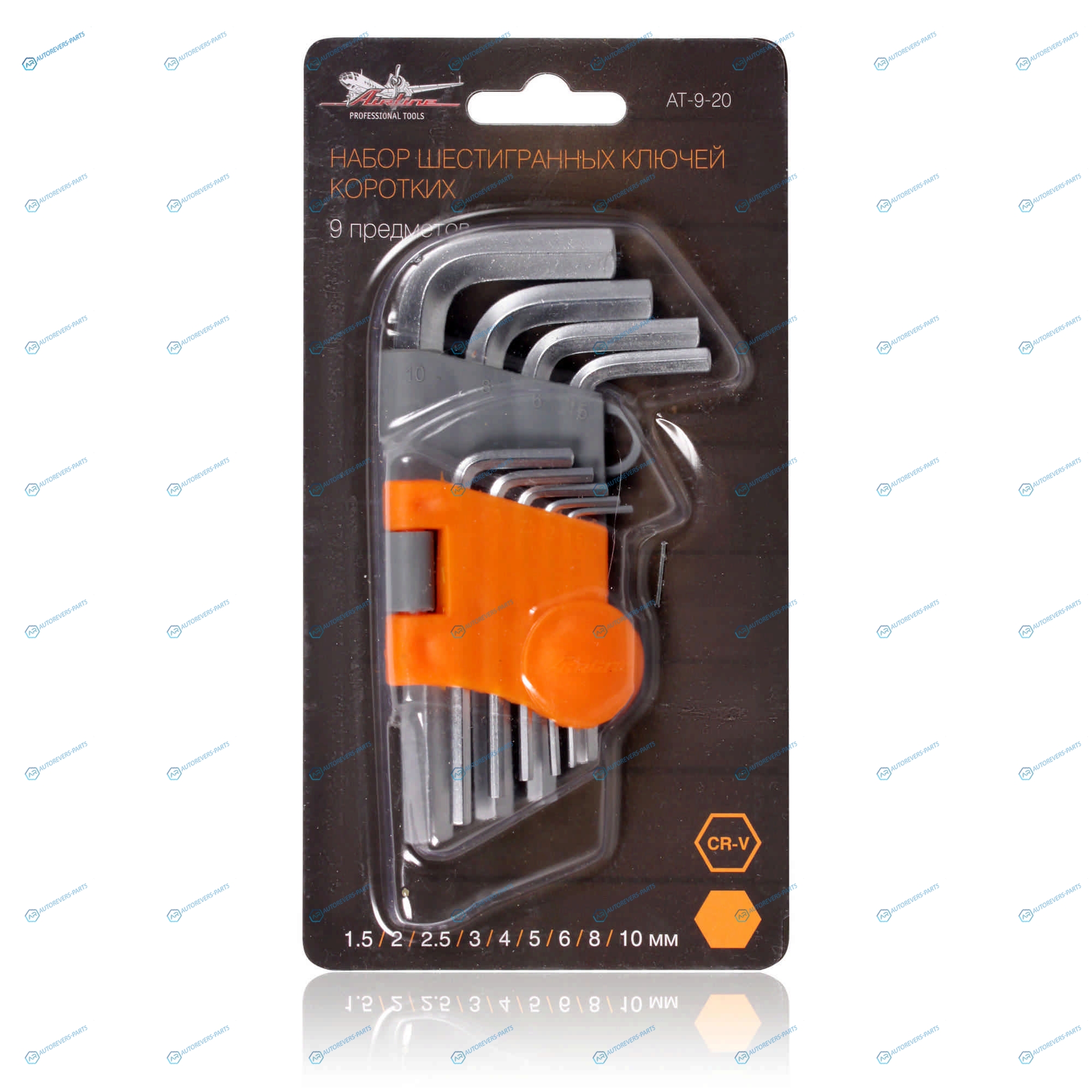 AT-9-20 Набор шестигранных ключей коротких 9 предметов (1.5.2.2.5.3.4.5.6.8.10мм) пласт.подвес