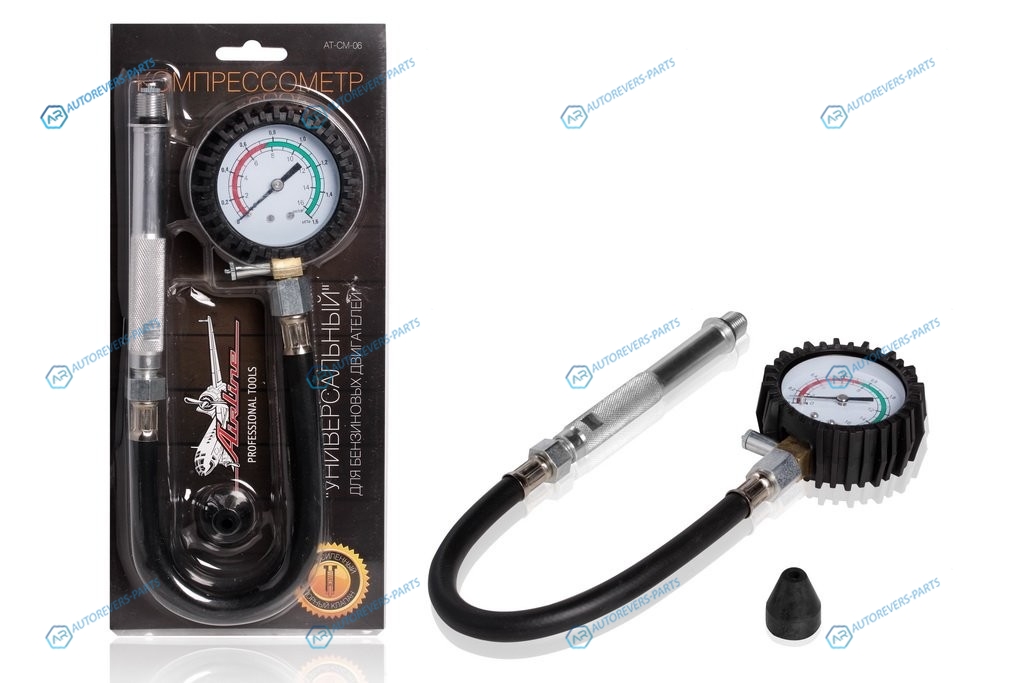 AT-CM-06 Компрессометр Универсальный Бензиновый. манометр в резиновом чехле. блистер