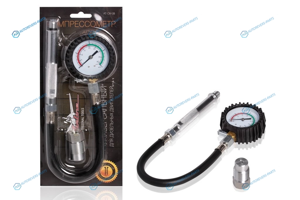 AT-CM-08 Компрессометр Универсальный Дизельный. манометр в резиновом чехле. блистер