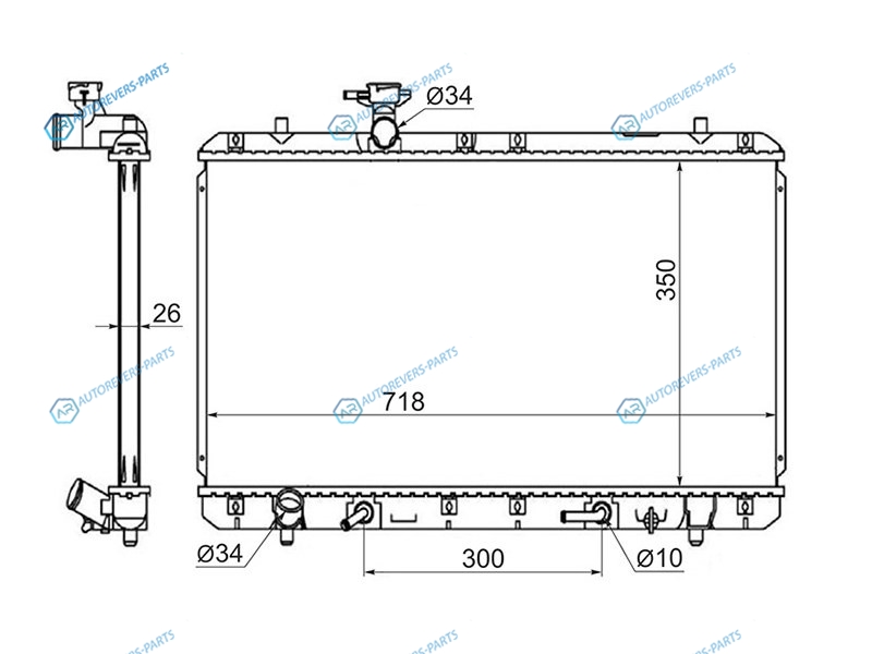 Радиатор SUZUKI AERIOLIANA 1.31.51.6 01-04 нижн. патрубок слева
