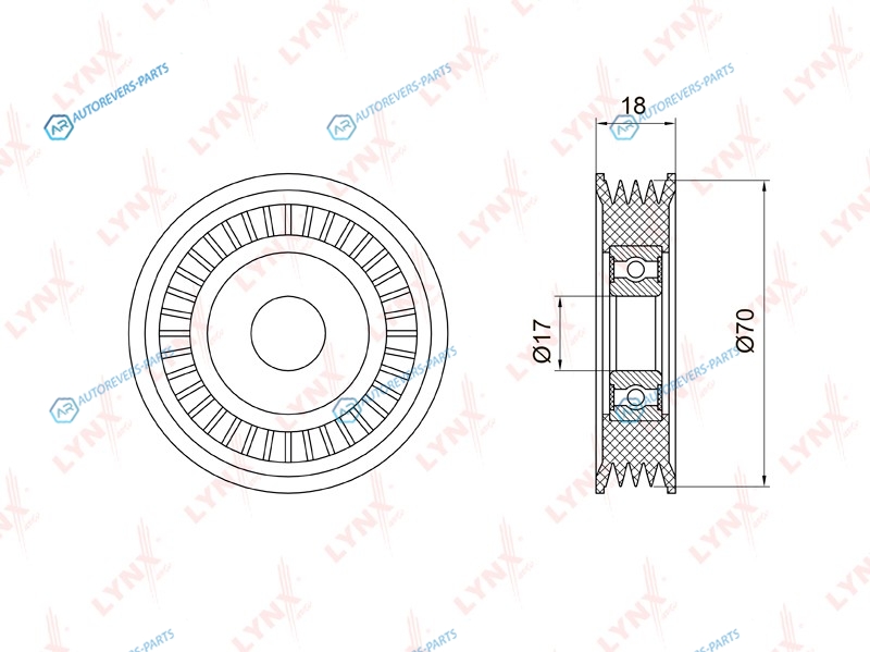 Диаметр [мм]:70 | Ширина [мм]:18 | Количество ребер:4 | Высота [мм]:55 | Глубина [мм]:95 | Ширина [мм]:95