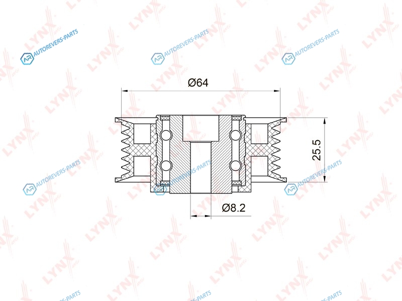 Диаметр [мм]:64 | Ширина [мм]:25.5 | Количество ребер:6