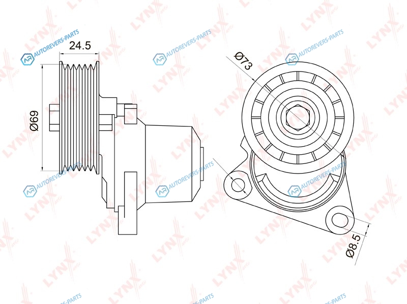 Наружный диаметр [мм]:73 | Диаметр [мм]:69 | Ширина [мм]:24.5 | Количество ребер:6