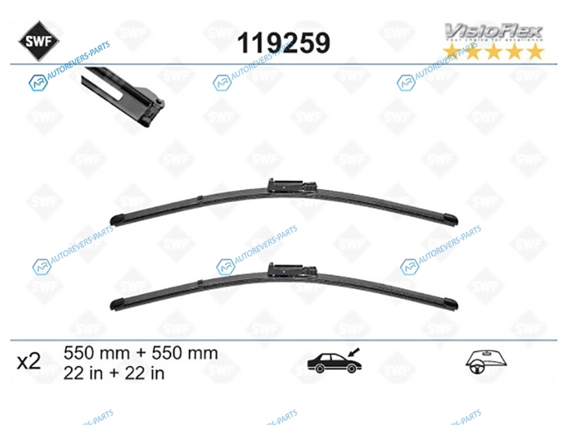Купить 119259 Комплект щеток стеклоочистителя 550мм+550мм SWF на автомобили AUDI A6S6 04-11 4D | AUDI A6S6 04-11 5D и оформить заказ вы можете у нас на сайте или позвонить нашему консультанту.