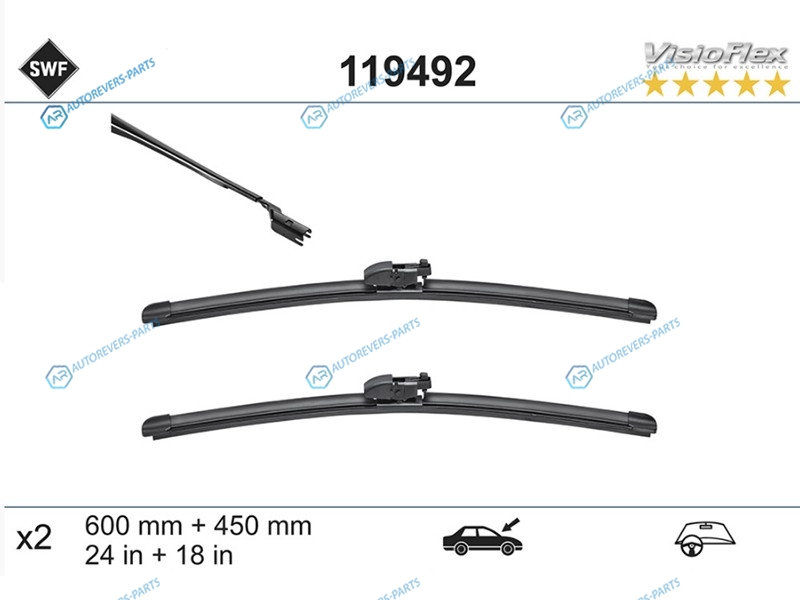 Купить 119492 Комплект щеток стеклоочистителя 600мм+450мм SWF на автомобили MAZDA 6 4D 12- | MAZDA CX-5 17- | MAZDA CX-9 16- и оформить заказ вы можете у нас на сайте или позвонить нашему консультанту.