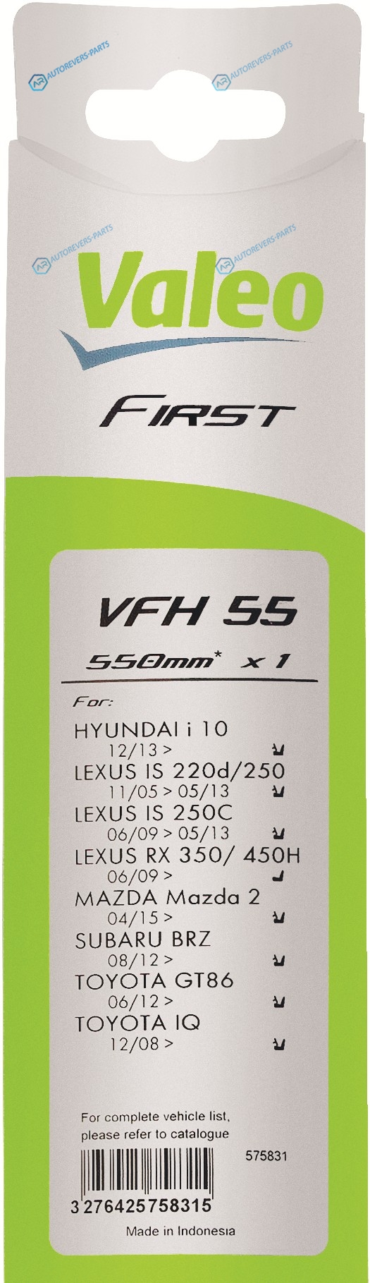 Купить 575831 Щетка стеклоочистителя First Hybrid гибридная 55022` (крючок) Valeo на автомобили HYUNDAI - i10 (BA IA):1.0 1.2 LEXUS - IS II:200d 220 d (ALE20) 250 250 (GSE20) 250 AWD 350 IS F (USE20)RX:270 350 350 AWD 450h 450h AWD SUBARU - BRZ:2.0 TOYOTA - GT 86 купе:2.0 GTIQ:1.0 1.33 1.4 D-4D EV и оформить заказ вы можете у нас на сайте или позвонить нашему консультанту.
