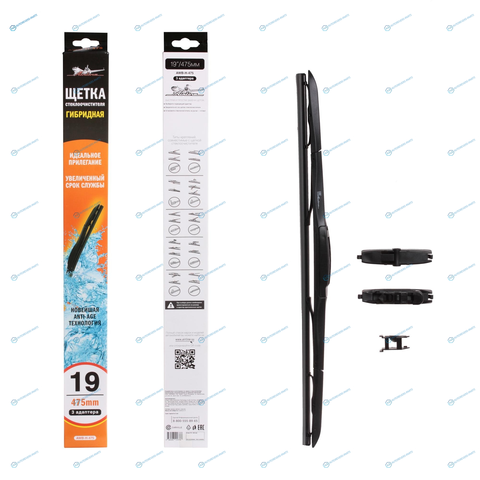 Купить AWB-H-475 Щетка стеклоочистителя 475 мм (19) гибридная. 3 адаптера AIRLINE на автомобили и оформить заказ вы можете у нас на сайте или позвонить нашему консультанту.