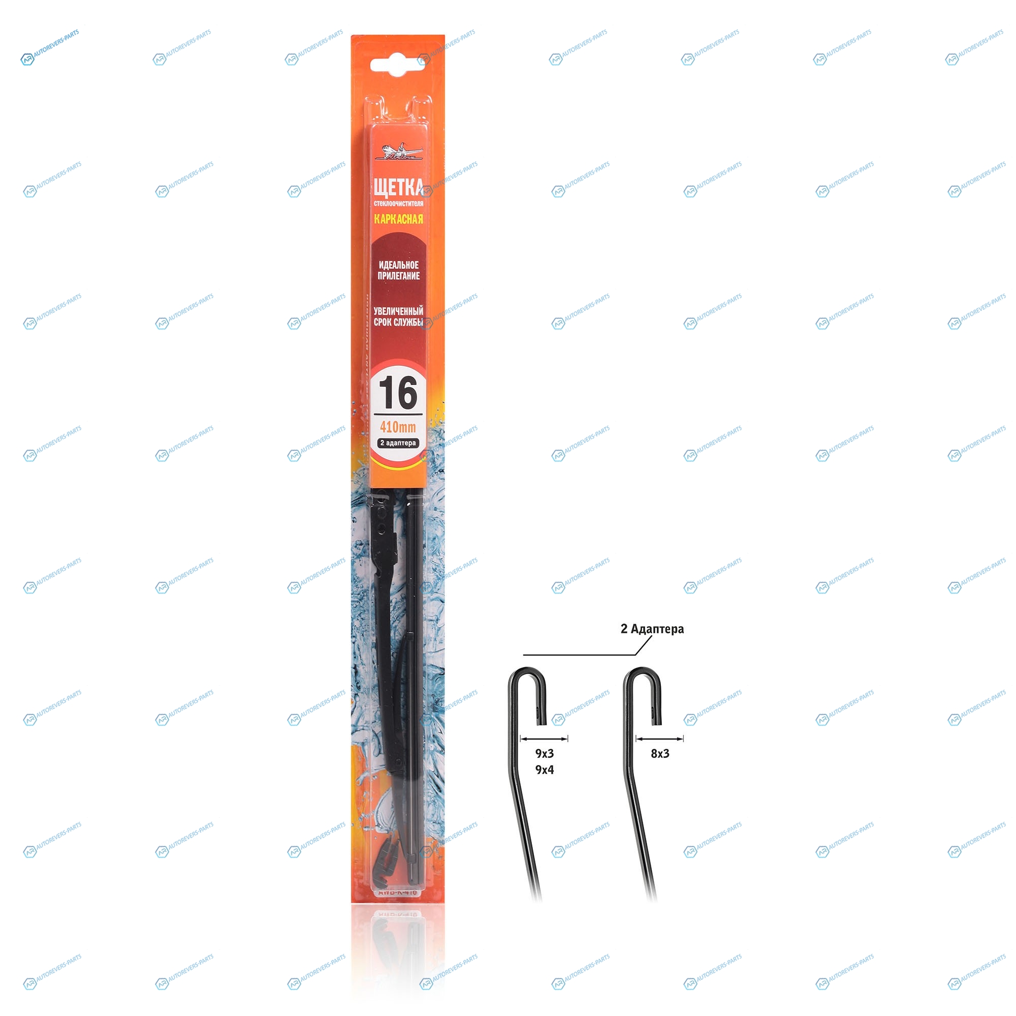 AWB-K-410 Щетка стеклоочистителя 410 мм (16) каркасная. 2 адаптера