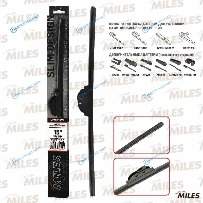 Купить CWF15AC Щетка бескаркасная (15370мм адаптер HOOK 9x39x4) CWF15AC MILES на автомобили Щетка бескаркасная (15370мм адаптер HOOK 9x39x4) CWF15AC и оформить заказ вы можете у нас на сайте или позвонить нашему консультанту.