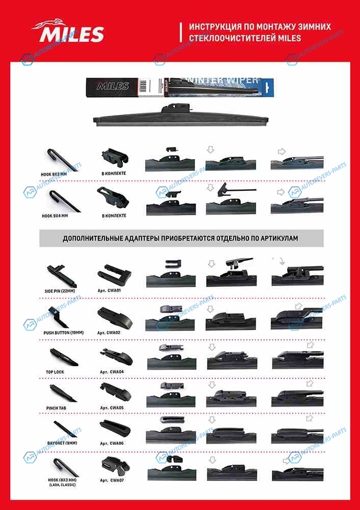 Купить CWW13AC Щетка со зимняя MILES 13330мм + адаптеры HOOK 9x39x4 CWW13AC MILES на автомобили Щетка со зимняя MILES 13330мм + адаптеры HOOK 9x39x4 CWW13AC и оформить заказ вы можете у нас на сайте или позвонить нашему консультанту.