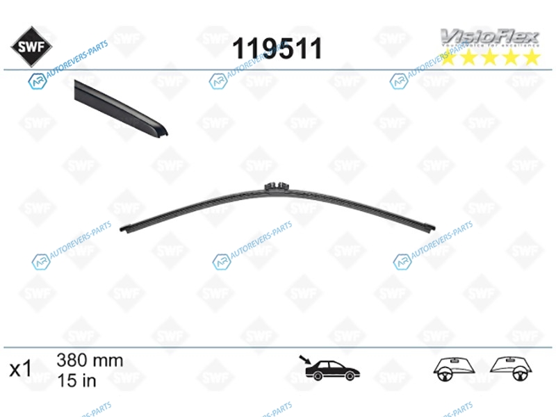 Купить 119511 Щетка стеклоочистителя задняя бескаркасная SWF VisioFlex (BMW X5 06-13 VOLVO XC60 09-17) SWF на автомобили BMW X5 E70 06-13 | VOLVO XC60 08-17 | VOLVO XC90 02-14 и оформить заказ вы можете у нас на сайте или позвонить нашему консультанту.