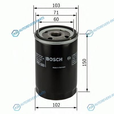 Диаметр [мм]:103 | Диаметр 1 [мм]:102 | Диаметр 2 (мм):71 | Диаметр 3 (мм):60 | Высота [мм]:150 | Присоединительная винтовая резьба:M 26 x 1.56 H | Давление открытия обгонного клапана [бар]:1 | Исполнение фильтра:Накручиваемый фильтр | Размер резьбы:M 26 x 1.5 | Наружный диаметр [мм]:102