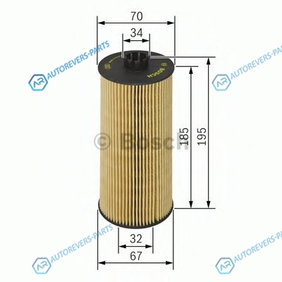 Исполнение фильтра:Фильтр-патрон | Диаметр [мм]:70 | Диаметр 1 [мм]:67 | Диаметр 2 (мм):34 | Диаметр 3 (мм):32 | Высота [мм]:195 | Высота 1 [мм]:185 | Наружный диаметр [мм]:70.1
