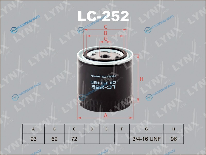 Купить LC-252 Фильтр масляный LYNXauto на автомобили AC - 428 Fastback:7.0428 кабрио:7.0 ALFA ROMEO - ALFASUD:1.3 (901.F0) ALPINE - A310:2.7 V6 AUSTIN - MAESTRO:1.6 Mayfair HLS 1.6 MGMONTEGO:1.6 LSHLMONTEGO универсал:1.6 LS BEIJING BENZ (BBDC) - JEEP 4000:4.0 Привод на все колесаJEEP 4700:4.7 Привод на все и оформить заказ вы можете у нас на сайте или позвонить нашему консультанту.
