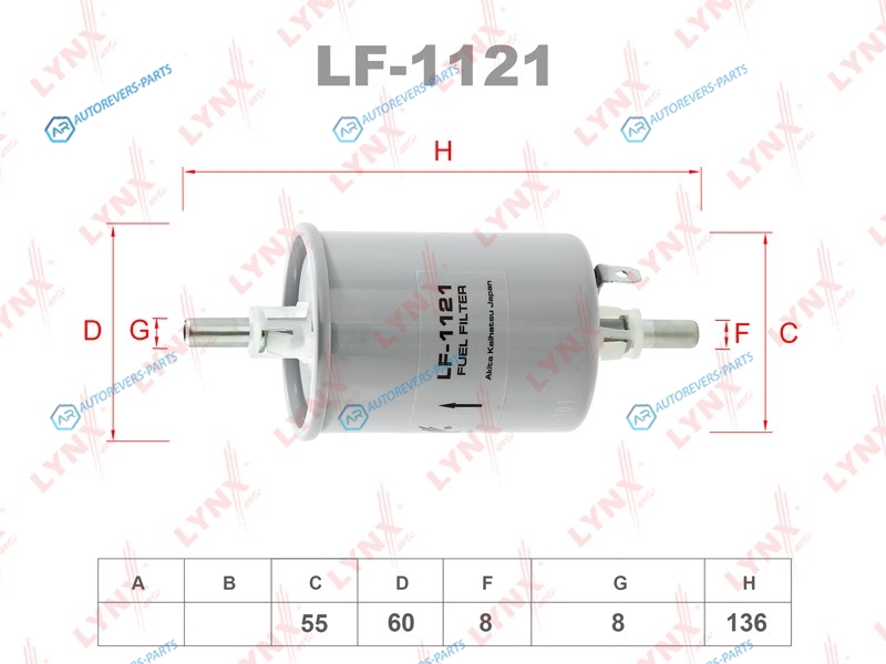 Купить LF-1121 Фильтр топливный LYNXauto на автомобили CHEVROLET - AVEO:1.2 1.2 LPG 1.4 1.4 CNG 1.5 1.6KALOS:1.2 1.4 1.4 16VKALOS седан:1.2 1.4 1.4 16VLOVA:1.4SPARK:1.0 1.2 1.2 LPG CHEVROLET (SGM) - AVEO:1.2 1.4 1.6 DAEWOO - AVEO:1.5 SEKALOS:1.2 1.4 1.4 16V 1.5KALOS седан:1.4 1.5NUBIRA седан:1.4REXTON:3.2 V6 и оформить заказ вы можете у нас на сайте или позвонить нашему консультанту.