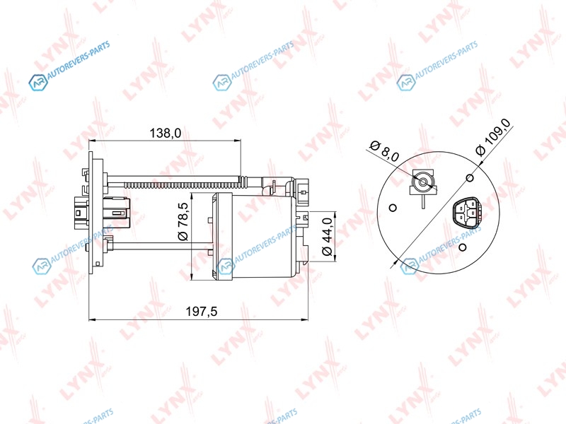 Сторона установки:в топливном баке | Высота [мм]:138 | Глубина [мм]:186 | Ширина [мм]:136