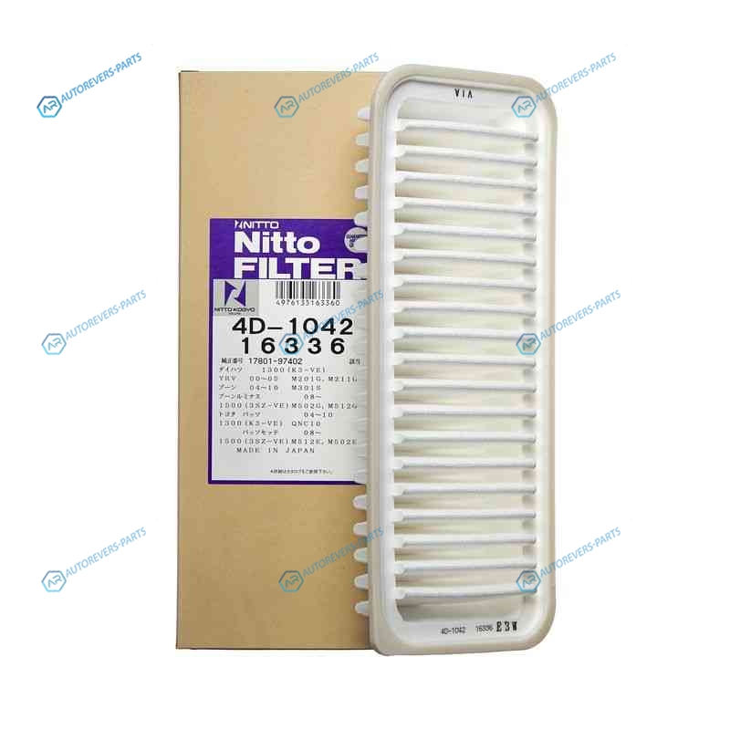Купить 4D-1042 Фильтр воздушный Nitto NITTO на автомобили A-741 TOYOTA: PASSO QNC10 K3-VE (1300cc) (06.04~02.10) PASSO-SETTE M52E 3SZ-VE (1500cc) (12.08~) DAIHATSU: YRV M21G K3-VE (1300cc) (08.00~08.05) BOON M301S K3-VE (1300cc) (06.04~02.10) BOON-LUMINAS M52G 3SZ-VE (1500cc) (12.08~) и оформить заказ вы можете у нас на сайте или позвонить нашему консультанту.