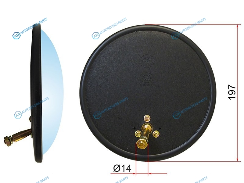 Зеркало нижнего вида UNIVERSAL круглое. крепление болт (d197mm SR150)
